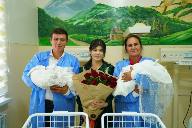 На 33-34-й неделе у женщины произошло излитие околоплодных вод. В связи с этим ее срочно направили в Ташкентский областной филиал Республиканского специализированного научно-практического медицинского центра здоровья матери и ребенка в городе Чирчике. Роды были проведены экстренно путем кесарева сечения. Общий вес новорожденных составил 3400 граммов, рост 41 и 40 сантиметров.