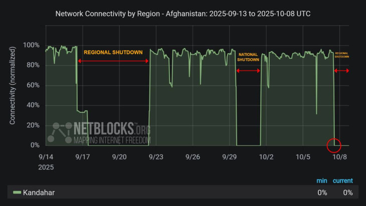 Тем временем NetBlocks сегодня опубликовал информацию о том, что помимо ограничений в социальных сетях, во вторник Афганистан ввел третий раунд отключений интернета в Кандагаре. Согласно сообщениям, некоторые государственные учреждения получили лишь ограниченный доступ к интернету.