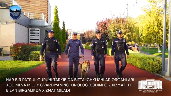 Патрульные наряды совместно со служебными собаками в качестве эксперимента начали деятельность в общественных местах, расположенных в Ташкенте и Нукусе, а также в областных центрах.