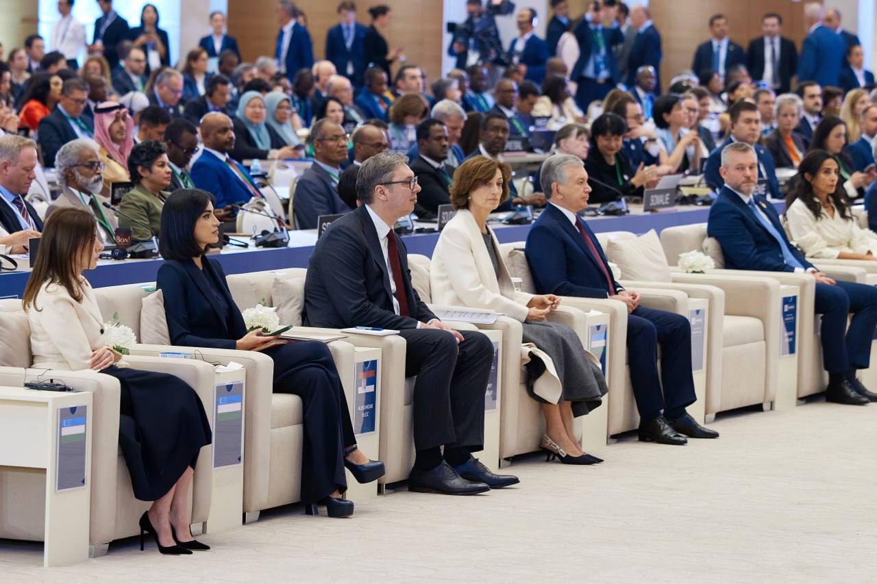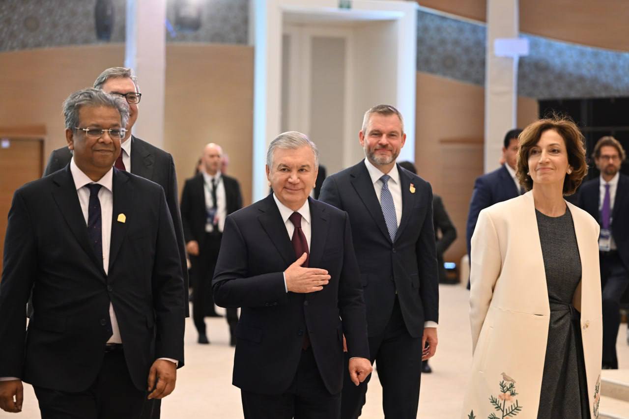 Глава государства тепло приветствовал участников форума на гостеприимной узбекской земле – перекрестке культур и цивилизаций. Он выразил глубокую признательность Президенту Сербии Александру Вучичу, Президенту Словакии Петеру Пеллегрини, Генеральному директору ЮНЕСКО Одри Азуле, главам правительств зарубежных стран, представителям международных и региональных организаций, а также всем делегациям за участие в конференции.