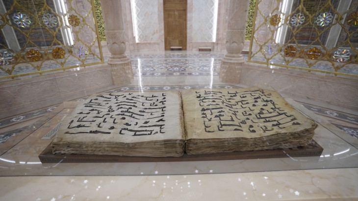 – Мусхаф, представленный здесь, является одной из самых древних и достоверных рукописей в истории ислама. Это благословенный экземпляр Корана, написанный по поручению праведного халифа Усмана, который руководил мусульманской уммой в 644-656 годах нашей эры и который он сам регулярно читал.