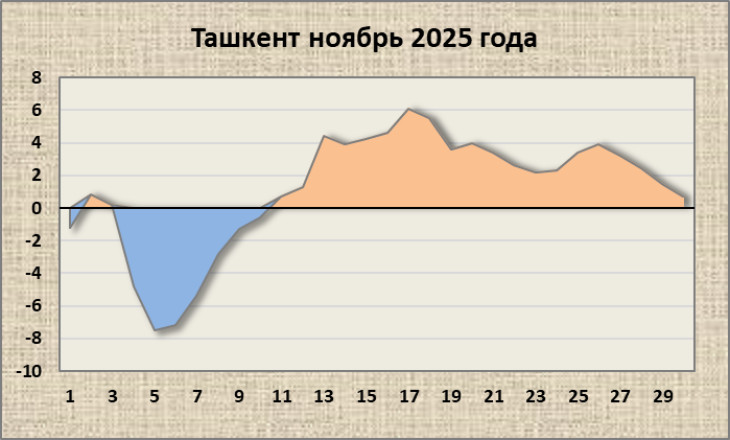 Специалисты Узгидромета проанализировали погодные условия в Узбекистане в ноябре 2025 года. Согласно данным, по Каракалпакстану, Хорезмской области и северу Навоийской области минувший месяц вошел в тройку самых теплых ноябрей - на 2-4° выше нормы - за все годы метеорологических наблюдений. По остальной территории республики средняя месячная температура ноября была близка к среднемноголетним значениям.