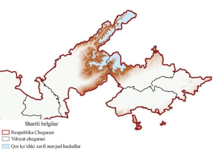 Узгидромет выпустил экстренную гидрометеорологическую информацию, согласно которой в ближайшие дни по горным районам двух областей Узбекистана есть риски схода снежных масс.