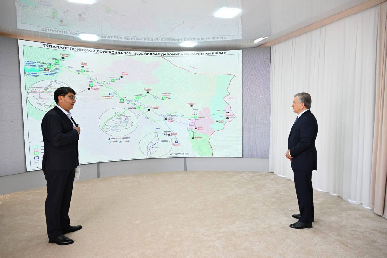 Президент Шавкат Мирзиёев в городе Термезе ознакомился с практическими результатами проекта по улучшению питьевого водоснабжения Сурхандарьинской области за счет использования воды Тупалангского водохранилища, сообщает в четверг пресс-служба главы Узбекистана.