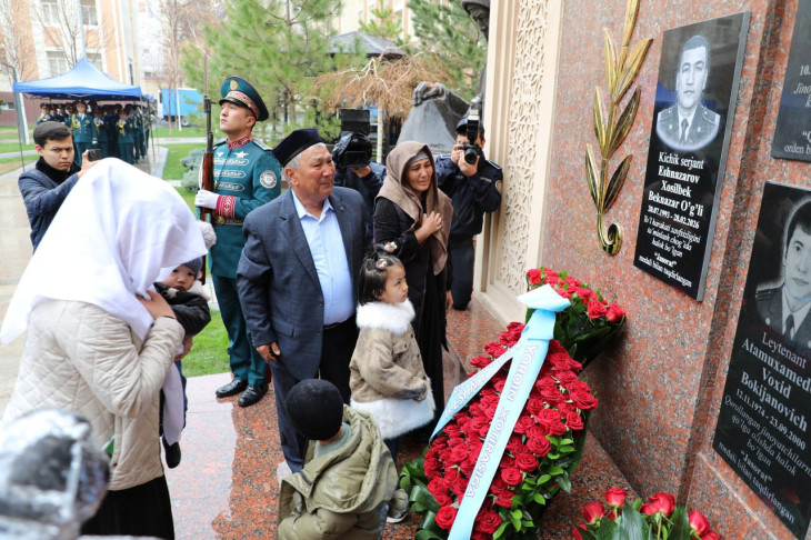 Затем был зачитан указ Президента Узбекистана, в соответствии с которым младший сержант Хосилбек Эшназаров был посмертно награжден медалью «Жасорат».