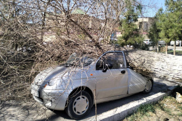 Инцидент произошел на парковке областного многопрофильного медицинского центра. На автомобиль упала тутовник с прогнившими корнями.
