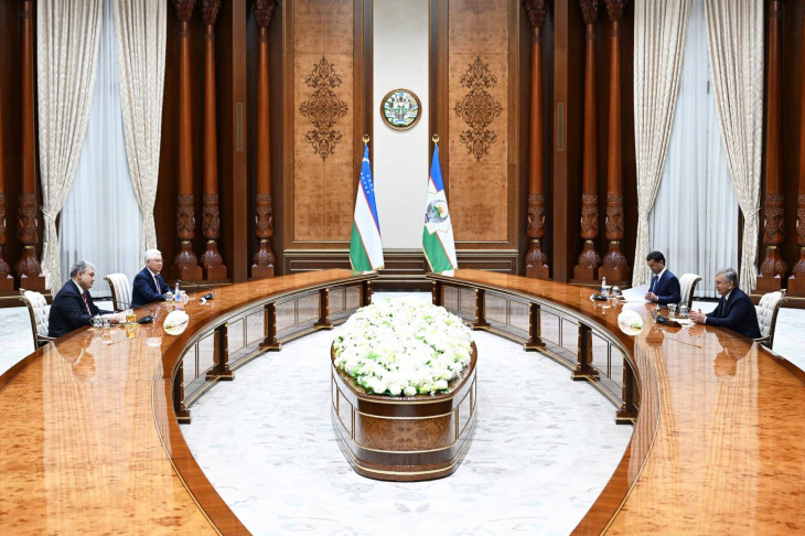 В начале беседы высокий гость передал Шавкату Мирзиёеву искренние приветствия и наилучшие пожелания Президента Казахстана Касым-Жомарта Токаева.