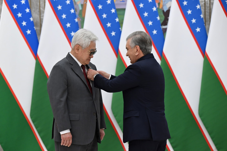 В завершение встречи за личный вклад в популяризацию таэквондо в Узбекистане и большие заслуги в укреплении уз дружбы и солидарности между народами мира посредством спорта Президент наградил Чо Чунг Вона орденом «Дўстлик».